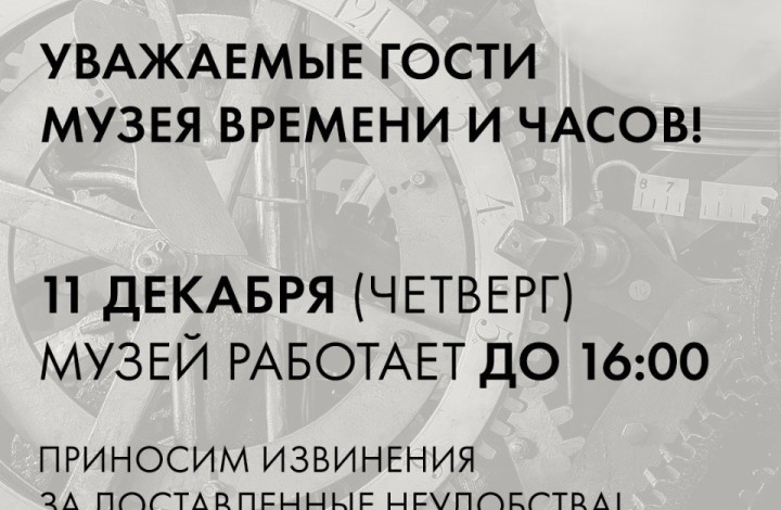 Экспонаты музея Наградные часы СССР Часы из кабинета Его Императорского Величества Наградные часы в Русской Императорской Армии МОРПРИБОР Корабельные часы Древние приборы времени Настольные часы XIX-XX вв. в индустриальном стиле Мануфактура "Константин Чайкин" - Konstantin Chaykin Memento Mori СЕЙЧАС В МУЗЕЕ Выставки: «Павелъ Буре. 210 лет часовой истории» С 5.12.2025 по 17.01.2026 «Шоковая терапия» Масштабный проект о феномене часов Сasio G-SHOCK С 19.11.2025 по 18.01.2026 «Душа России» Выставка современного ювелирного искусства С 26.11.2025 по 15.01.2026