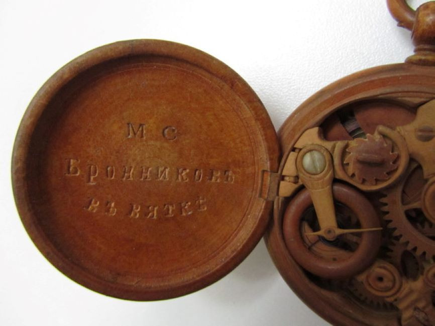 В 1837 году вятский ремесленник Семен Бронников, потомственный резчик и столяр, изготовил для выставки местных промыслов «малую штуку» – карманные часы. Цесаревич (будущий император Александр II), посетивший губернский ремесленный смотр, был так впечатлен мастерством умельца из глубинки, что выкупил хронометр для собственной коллекции. Что же поразило августейшую особу из столицы: золото? бриллианты? Увы, всего этого у сына провинциального мещанина (а еще пятнадцать лет назад его отец и вовсе был крестьянином и жил в деревне Бронники) и быть не могло. Просто и корпус, и механизм часов (за исключением пружины и осей) были сделаны из дерева! И это был не макет, не муляж, а настоящие действующие часы.