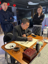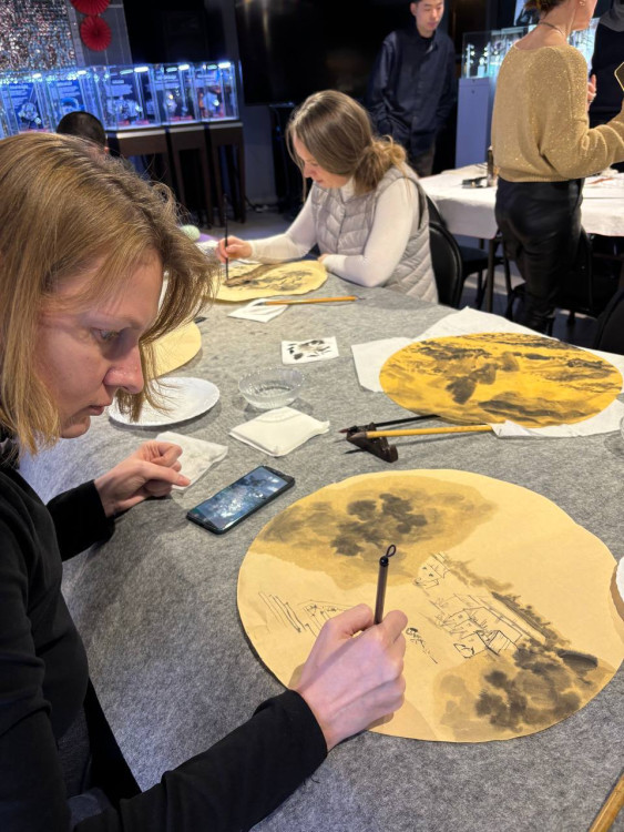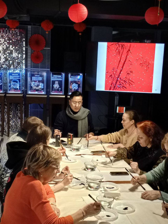 Вчера в Музее Времени и Часов художники, аспиранты РГХПУ им. С.Г.Строганова, Сунь Цзиньчао и Ду Шанждэ, в рамках празднования Китайского Нового года, провели творческий мастер-класс. Гостям Музея рассказали о технике китайской живописи, показали, как правильно нарисовать бамбук и пейзаж, а также научили правильно прописывать иероглифы.