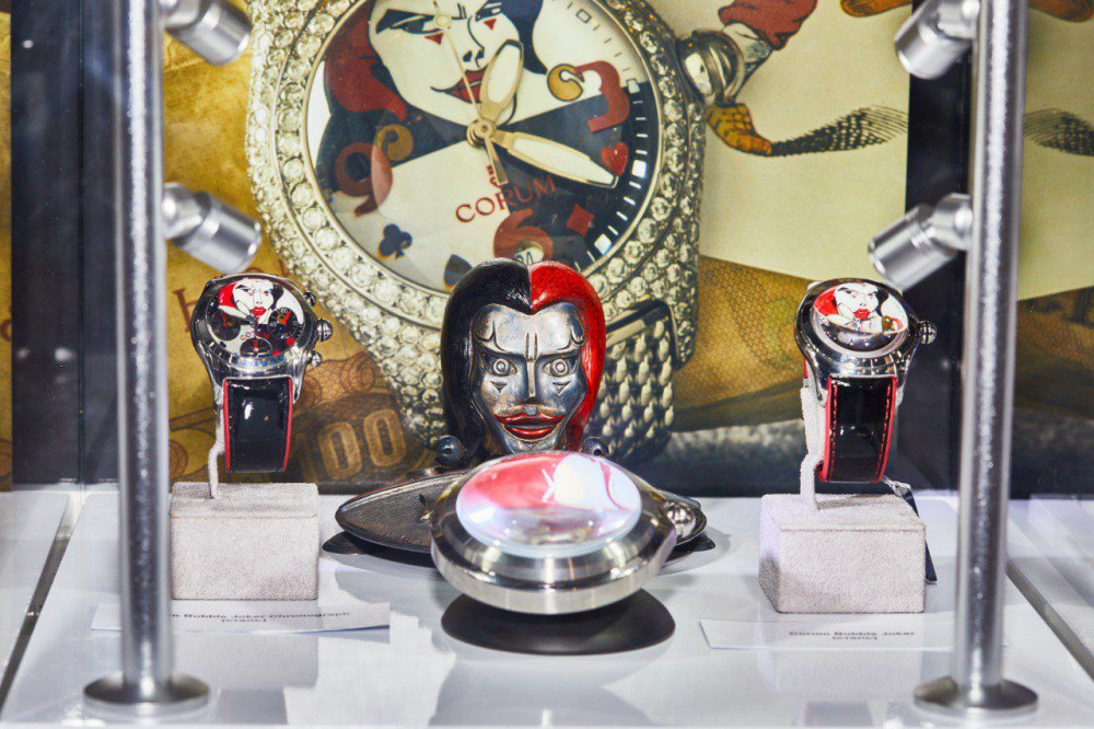 Помимо знаменитых моделей Bubble, таких как Bats, Royal Flush, Casino, Red Cross, Jackie Chan, Baron Samedi, Jolly Roger, в экспозиции представлены часы из коллекций Corum Coin Watch и Сorum Golden Book.
