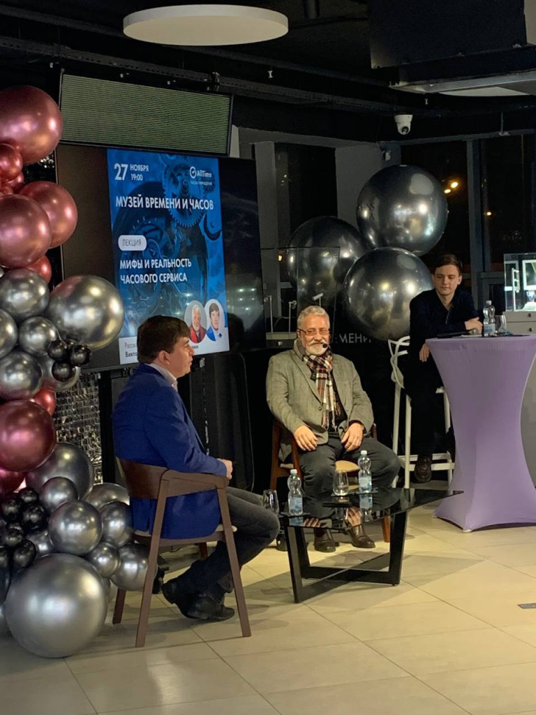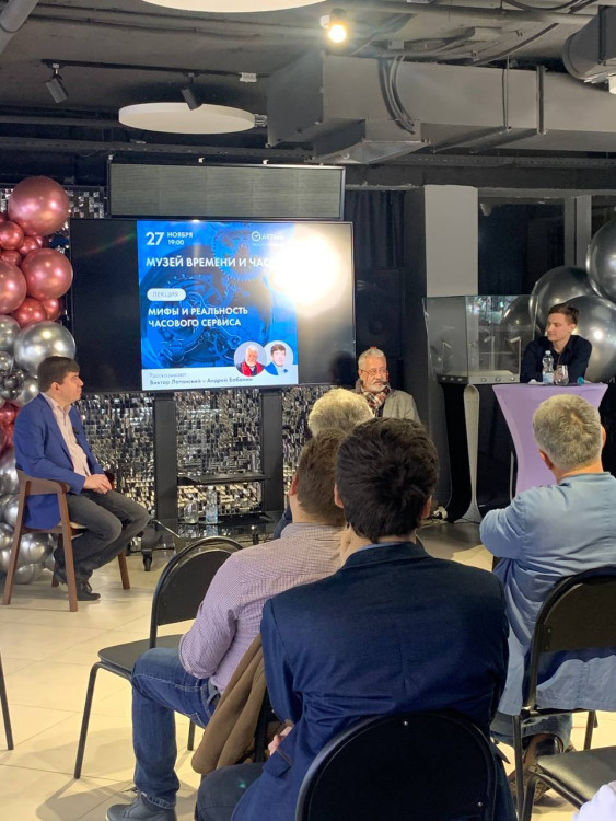 Вчера, 27 ноября, в Музее Времени и Часов состоялась встреча с часовыми мастерами и экспертами Виктором Петровичем Латанским и Андреем Юрьевичем Бабаниным. Ведущим мероприятия выступил коллекционер и часовой мастер Никита Гусев.
