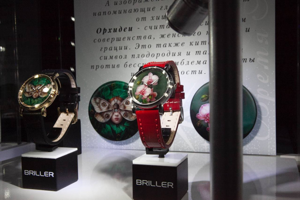 20 февраля в Музее Времени и Часов состоялось открытие выставки «Время блистать» от BRILLER, на которой представлены часы и ювелирные украшения, выполненные в традиционных техниках: флорентийская мозаика, лаковая миниатюра, гильоше и горячая эмаль. Каждое произведение неповторимо, так как делается вручную из природных камней.