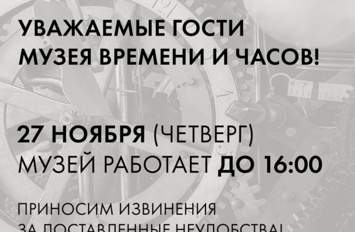 Обращаем Ваше внимание, что 27 ноября (четверг) Музей работает до 16:00.