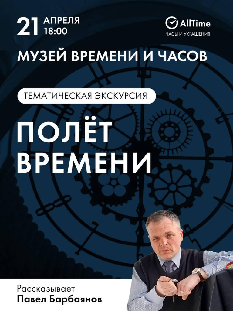 Музей Времени и Часов приглашает 21 апреля (вторник) в 18:00 на авторскую экскурсию «Полёт времени», которую проведет Хранитель музея Павел Барбаянов.
