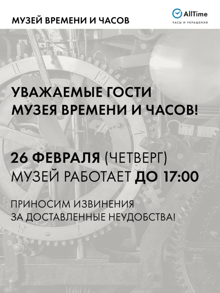 Обращаем ваше внимание, что 26 февраля (четверг) Музей работает до 17:00.