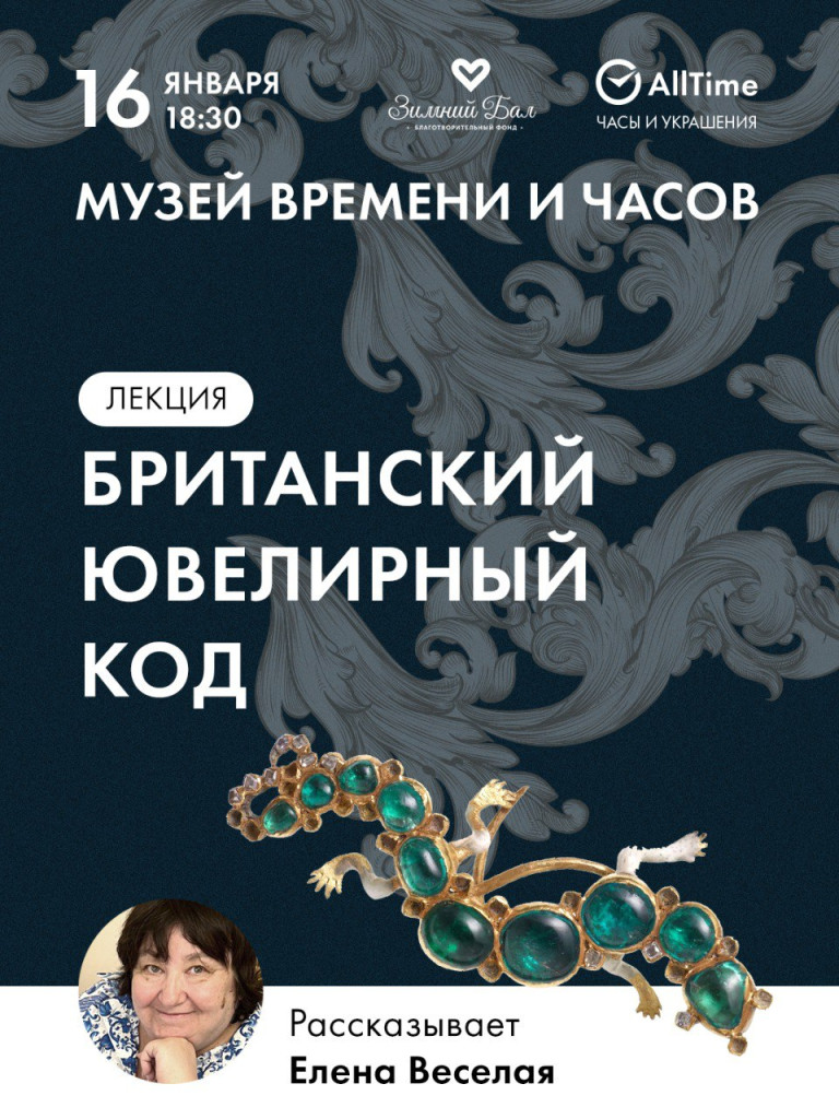 Музей Времени и Часов приглашает 16 января в 18:30 на лекцию Елены Веселой «От Чипсайдского клада до наших дней: британский ювелирный код».