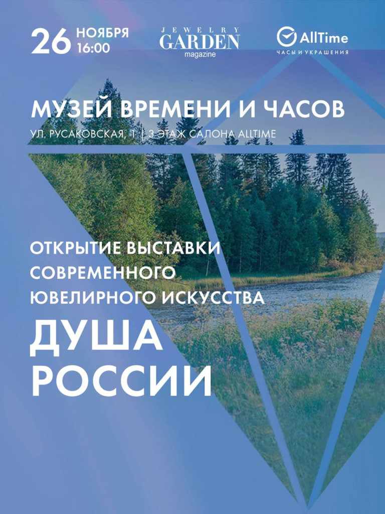 Музей Времени и Часов приглашает 26 ноября (среда) в 16:00 на открытие выставки современных авторских украшений российских дизайнеров «Душа России», приуроченной к 20-летнему юбилею культового журнала JEWELRY GARDEN.