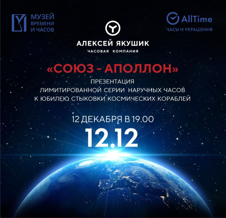 Музей Времени и Часов и Часовая компания Алексея Якушика приглашают 12 декабря на презентацию новых часов «Союз-Аполлон».