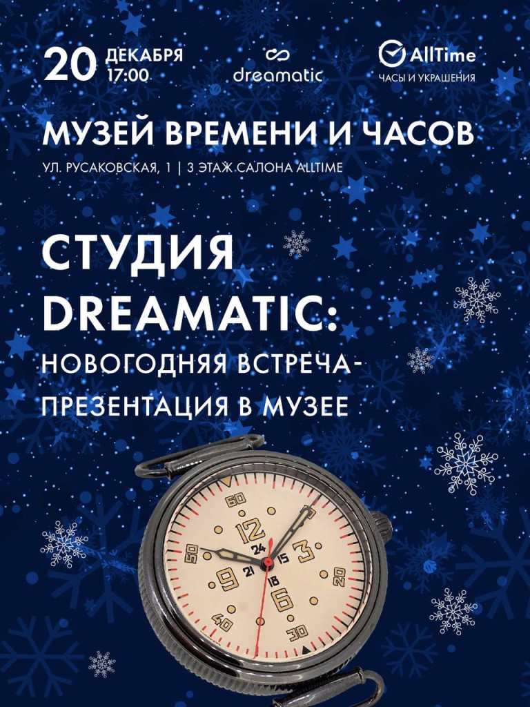 Музей Времени и Часов и Студия Dreamatic приглашают 20 декабря (суббота) в 17-00 на новогоднюю встречу с коллегами.