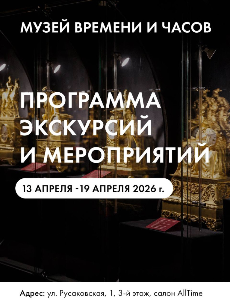 Музей Времени и Часов приглашает на следующей неделе (13-19 апреля) на обзорные экскурсии и лекции.