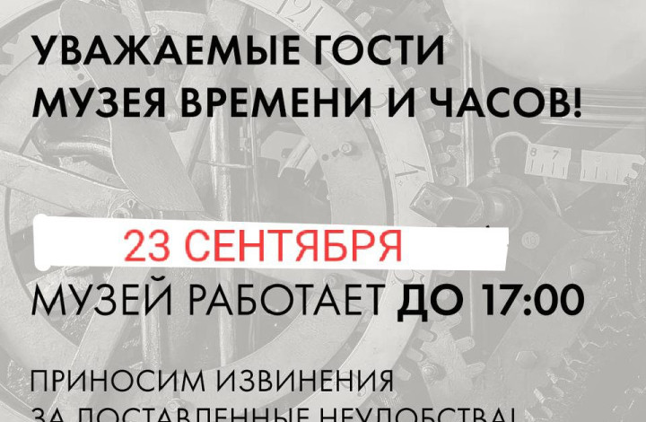 ИЗМЕНЕНИЕ В РАБОТЕ МУЗЕЯ 23 СЕНТЯБРЯ!